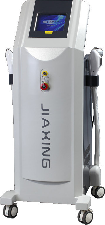 Wenn die drei in einer Behandlung vereinigt werden, können wunderbare Behandlungserfahrung und -ergebnis erwartet werden. Die Energie der Hochfrequenz kann das mittlere erreichen und tiefe Schicht der Haut und Gewebe oben zu erhitzen so niedrigere Energie ist während der IPL-Behandlung angewandt. Unbequemes Gefühl während der IPL-Behandlung wird erheblich verringert und besseres Ergebnis kann erwartet werden. Darüber hinaus kann das Kühlsystem, das in E-Licht mit einbezogen wird, das unbequeme Gefühl auch erleichtern.