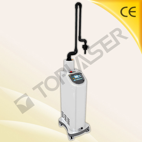 CO2 feuert Bruchlaser-System ein Laserstrahl, das dann in Zahlen von mikroskopischen Strahlen aufgespaltet wird und kleinen Punkt oder Pixel ähnliche Behandlungszonen innerhalb des vorgewählten Zielbereichs der Haut produziert ab und verlässt die anderen Zonen innerhalb es tadellos intakt. Deshalb überschreitet die Hitze von Laser nur tief durch das uneinige Notstandsgebiet. Dieses lässt die Haut viel schneller heilen als, wenn der ganze Bereich behandelt wurde. Während der selbst-erneuernden Haut, wird eine große Menge des Kollagens für Hautverjüngung produziert, schließlich schaut die Haut viel gesünder und jünger