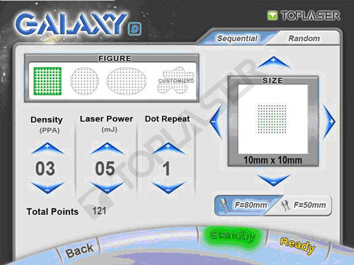 1. Durchschnittliche Energie: 1w~30w; 2. Impulsdauer: 0.1s~1s optional, weg von time1ms |