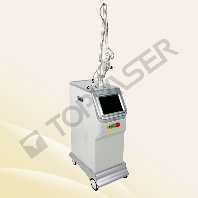 CO2 feuert Bruchlaser-System ein Laserstrahl, das dann in Zahlen von mikroskopischen Strahlen aufgespaltet wird und kleinen Punkt oder Pixel ähnliche Behandlungszonen innerhalb des vorgewählten Zielbereichs der Haut produziert ab und verlässt die anderen Zonen innerhalb es tadellos intakt. Deshalb überschreitet die Hitze von Laser nur tief durch das uneinige Notstandsgebiet. Dieses lässt die Haut viel schneller heilen als, wenn der ganze Bereich behandelt wurde. Während der selbst-erneuernden Haut, wird eine große Menge des Kollagens für Hautverjüngung produziert, schließlich schaut die Haut viel gesünder und jünger.