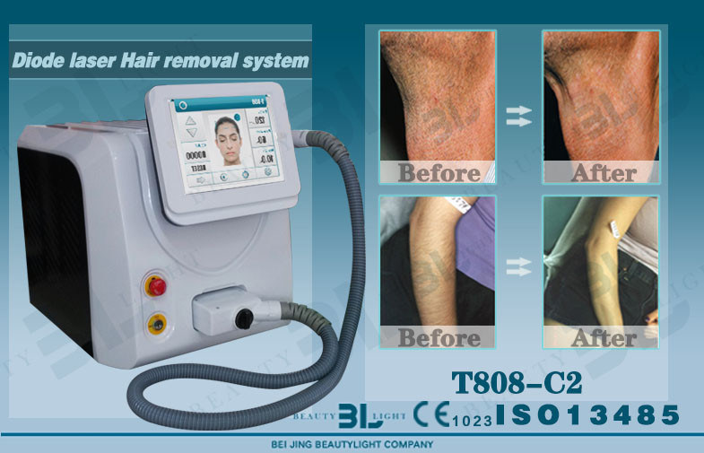 Το σύστημα εξολοθρευτών t808-γ, που χρησιμοποιεί το ειδικό λέιζερ με το μακροχρόνιο πλάτος παλμώσεων 808nm, μπορεί να διαπεράσει στο θυλάκιο τρίχας. Χρησιμοποιώντας την εκλεκτική θεωρία ελαφριάς απορρόφησης, το λέιζερ μπορεί να απορροφηθεί κατά προτίμηση από τη μελανίνη της τρίχας και έπειτα της θέρμανσης του άξονα τρίχας και του θυλακίου τρίχας, επιπλέον για να καταστρέψει την οργάνωση θυλακίου και οξυγόνου τρίχας γύρω από το θυλάκιο τρίχας. Όταν τα αποτελέσματα λέιζερ, σύστημα έχουν την ειδική τεχνολογία ψύξης για να δροσίσουν το δέρμα και να προστατεύσουν το δέρμα από να βλαφθούν και να φθάσουν σε μια πολύ ασφαλή και άνετη επεξεργασία.