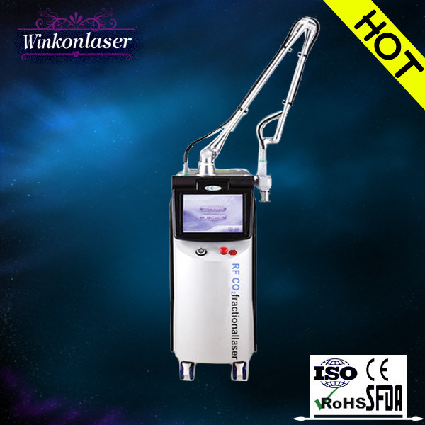 Laser frakcyjny CO2 System nawierzchni skóry, mogą zrobić dokładnie traktowanie na tkance docelowej przez wysłanie kilkudziesięciu do kilkuset nanometrów poziomie mikro-impulsowych wiązek laserowych w cząstkowej i uporządkowany ze specjalnego pistoletu laserowego. Energia tego rodzaju laser jest jednorodny i stabilny. Operator może sterować rozmiar wzoru, a głębokość obszaru leczenia. Ma ona jedynie na tkance docelowej bez wpływu na otoczenie. Podczas skanowania, reakcja termicznego sprzyja regeneracji kolagenu skóry i reorganizację, która przyspiesza regenerację skóry i rejuvenations. Punkty strzału może przenosić ciepło do otoczenia w czasie, aby uniknąć przegrzania uszkodzenia. A po maleńkiej blizny na punkcie rzutu zasnąć, otrzyma wynik nawierzchni skóry.